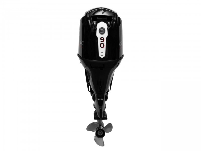 Четырехтактный инжекторный лодочный мотор HIDEA HDEF 90 FEX-T мощностью 90 л.с. с дистанционным управлением и ногой X 635 мм. Мотор имеет переднюю, заднюю передачу и нейтраль. Выхлоп мотора осуществляется под воду.