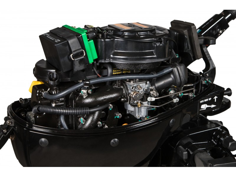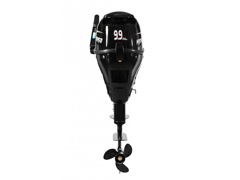Четырехтактный карбюраторный лодочный мотор Hidea HDF 9.9 HES-IB мощностью 9,9 л.с. c электростартером и встроенной аккумуляторной батареей. Мотор имеет переднюю, заднюю передачу и нейтраль. Выхлоп мотора осуществляется под воду через винт. Мотор имеет два режима мелководья.